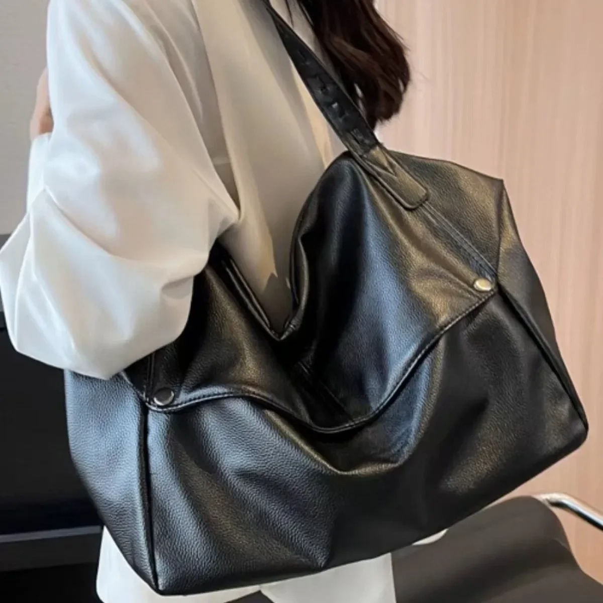 American College Style Simple Large Capacity Airport Wanderlust Soft Leather Tote Bag Women’s Crossbody Bag Trendy